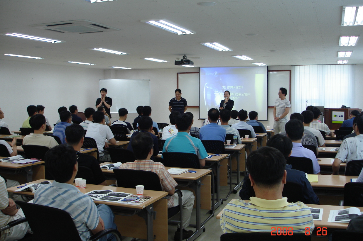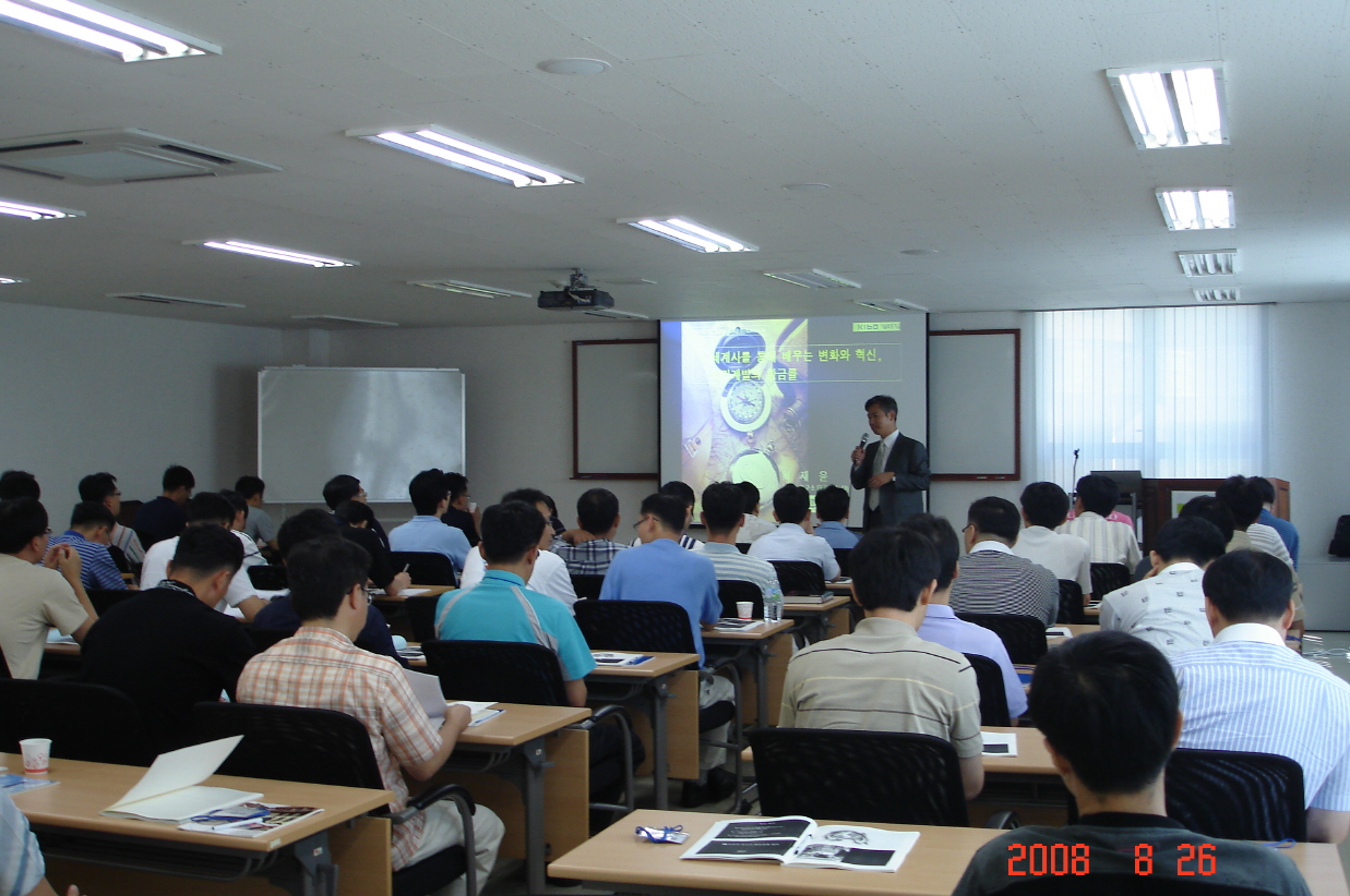 1. 제목 기술보증기금 3, 4급 승진자 연수과정 특강- 세계사를 통해 배우는 변화와 혁신(3H) 2. 대상 3/4급 관리자 이상 승진자(총 60명) 3. 일시 및 장소 2008.8.26 15:00~18:00 기술보증기금 연수원 4. 강사 최재윤 박사(크로스경영연구소 대표이사/Ph.D)