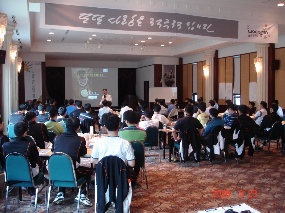 1. 제목 [웅진케미칼] 2008 Together One 과정 Workshop(제 18차) 특강- "세계사를 통배 배우는 변화와 혁신, 자기계발의 황금률 찾기" 2. 대상 웅진케미칼(주) 전 임직원(제 18차/총 18차수) 3. 일시 및 장소 2008.6.23/ 양평 쉐르빌 리조트 4. 강사 최재윤 박사(크로스경영연구소 대표이사/Ph.D)